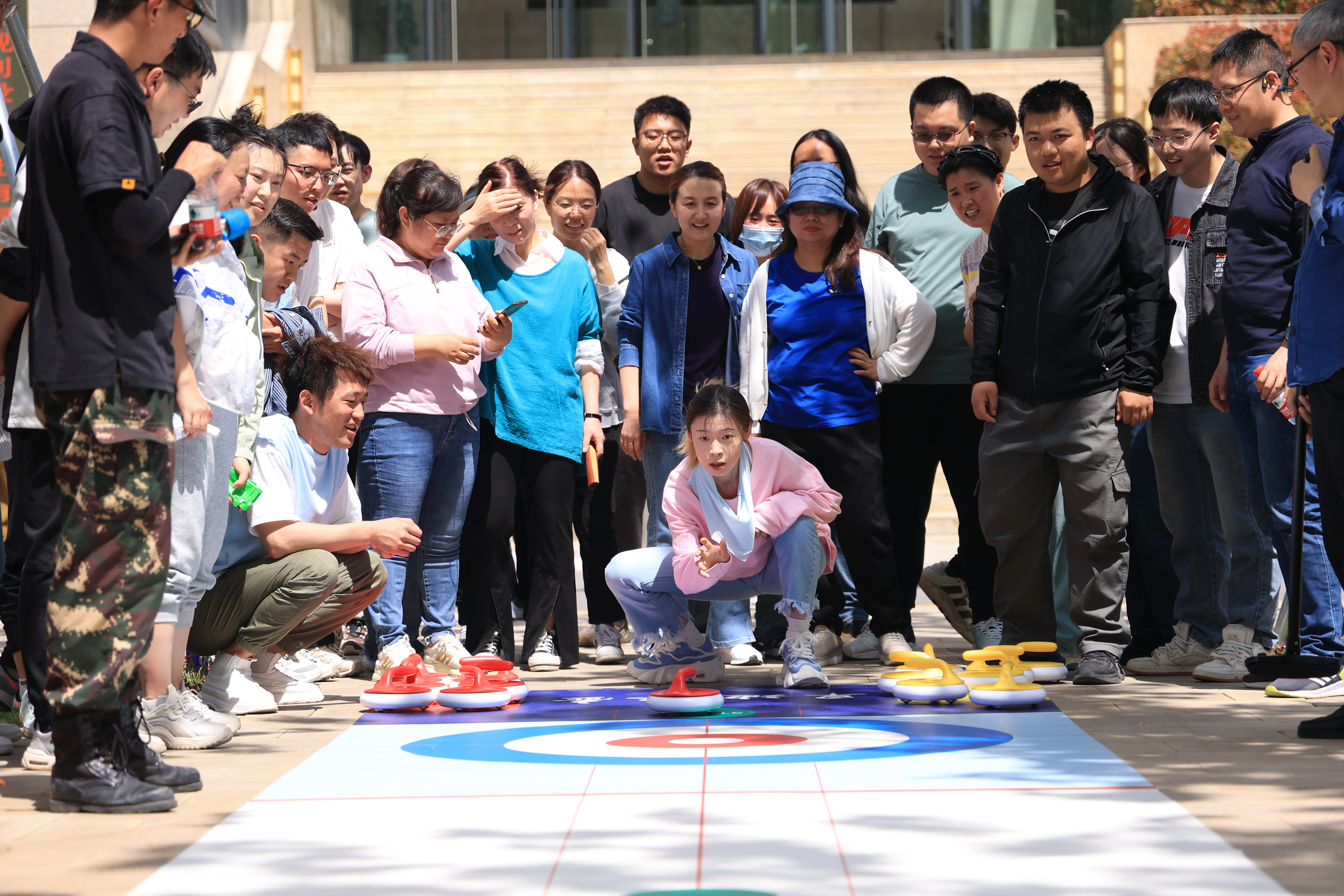 精心設(shè)計(jì)的大腳行走、大錘軋球、重走長(zhǎng)征路、無(wú)敵風(fēng)火輪、旱地冰壺等趣味PK項(xiàng)目,巧妙地將200余名參賽者隨機(jī)組合為7支團(tuán)結(jié)協(xié)作的小家庭,在歡樂(lè)的氣氛中加深了彼此的了解與友誼。